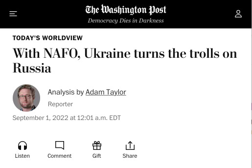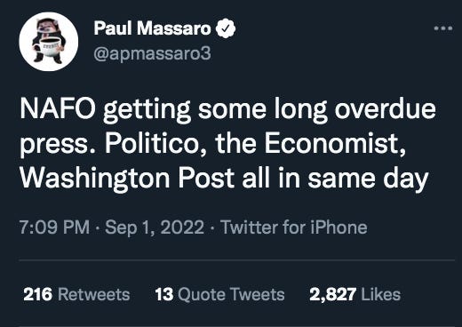 For more on the disturbing origins of NAFO and the campaign to support its growth, I encourage you to read Moss Robeson’s NAFO deep dive on Medium.