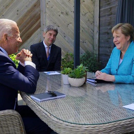 German Chancellor Angela Merkel was in high spirits, fresh from inking a Biden Administration-approved Nord Stream 2 pipeline deal with Russia that undermines U.S. interests. The days of taking America for a ride are back in play, on both an economic and defense front, and Merkel couldn’t help but to express her excitement. She’s now off the hook on Germany providing for its own defense, and she’s now free to cozy up to America’s adversaries.