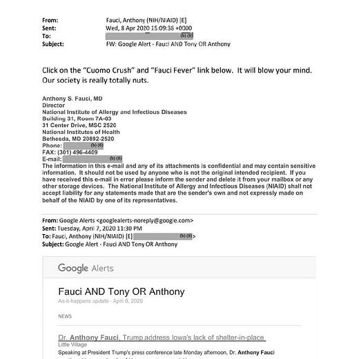 Megalomaniac: Fauci has every article that mentions his name delivered to his inbox