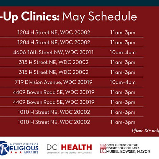 “Through the ‘Faith in the Vaccine’ initiative, DC Health is working with the Leadership Council for Healthy Communities and the Black Coalition Against COVID to further engage the faith-based community with the goal of spreading the word about the safety and effectiveness of the COVID-19 vaccine and supporting residents in getting vaccinated,” read a statement from the mayor’s office.