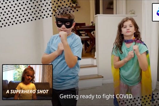Pfizer tells kids the shots will give them "superpowers."